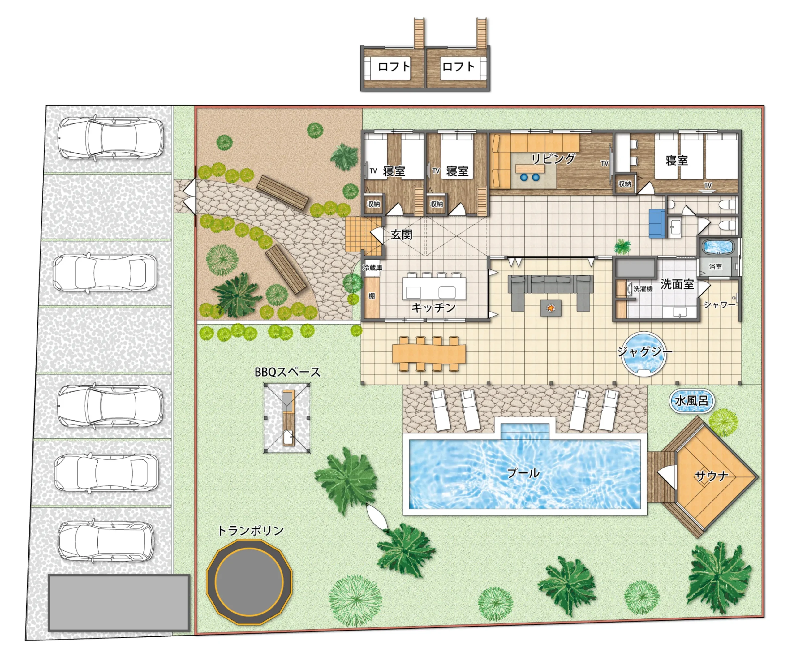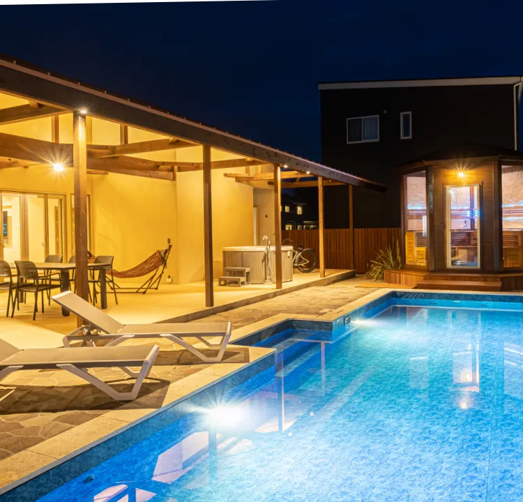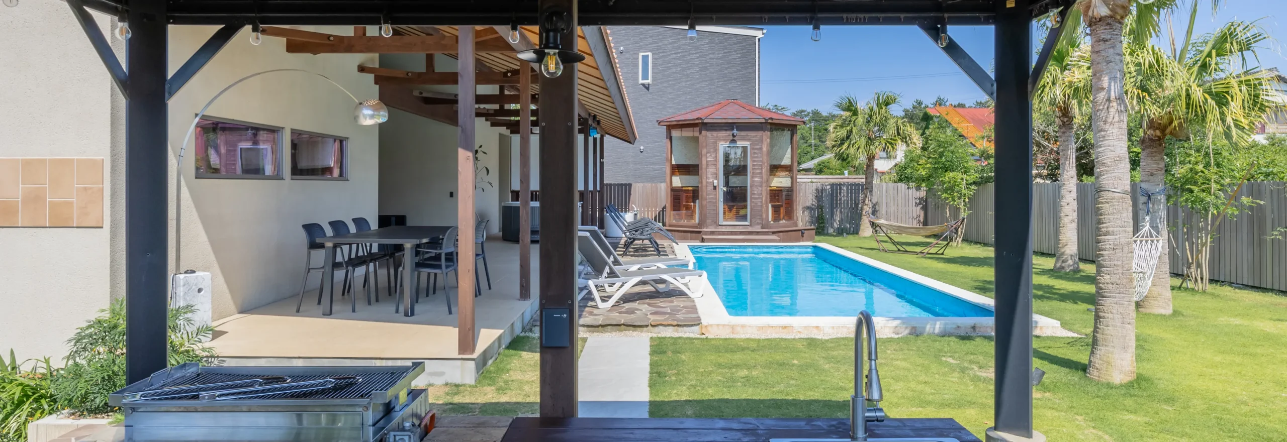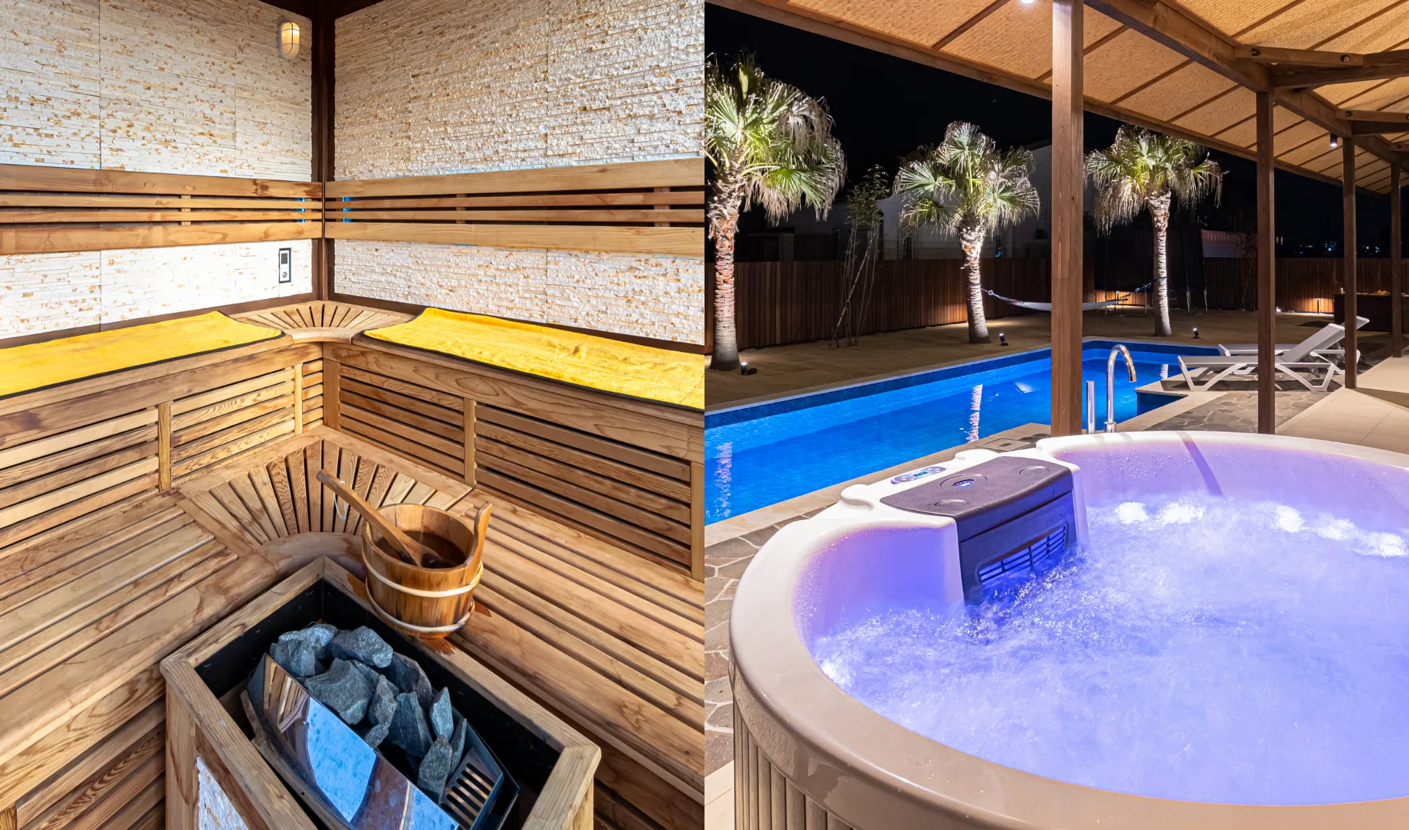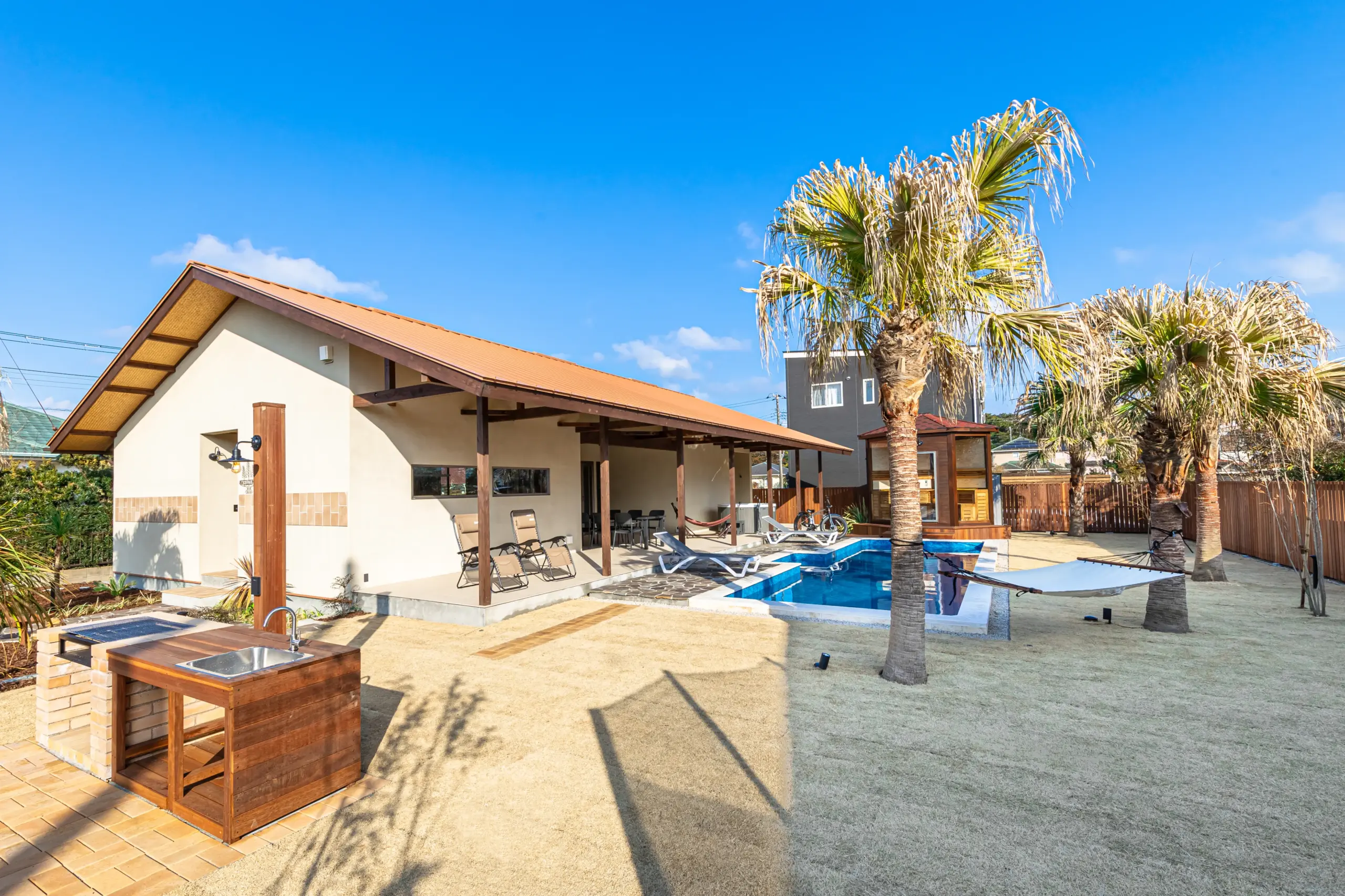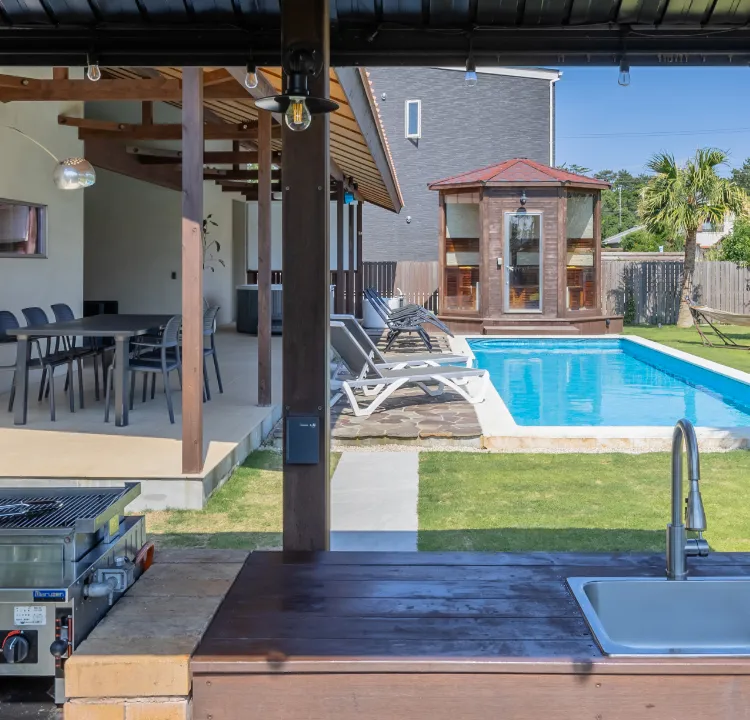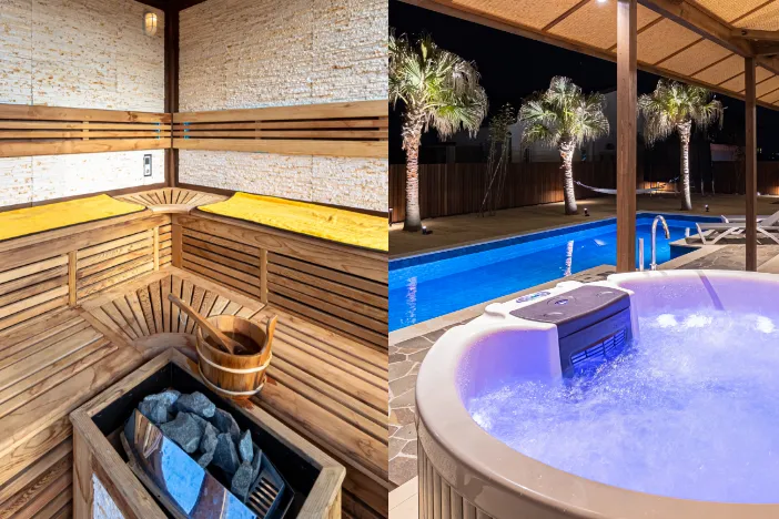 温水プールとサウナ、ジャグジー、バーベキューとフル装備された、お家はとても居心地が良くスタッフの方も丁寧で、欲しいものが全て揃っており、安く感じました。